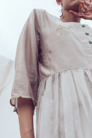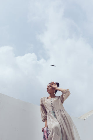 Ash sheer tunic + Ash chanderi pants + Ash zari butti dupatta