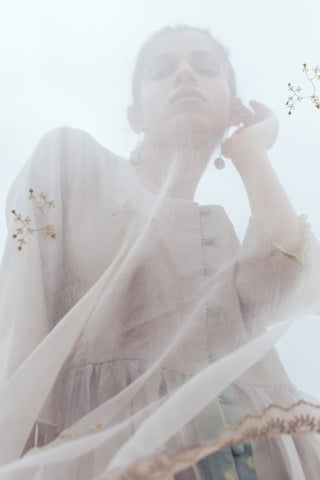NOTE: The pieces part of this edit are crafted with precision and quality from fabrics diaphanous in nature. These garments involve hand skills which are time and labour intensive. Therefore we won't be able to acknowledge any returns on the same. For customisation request or queries to be answered before making a purchase please reach out to us at studiobykhyati@gmail.com