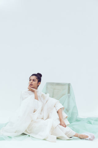 NOTE: The pieces part of this edit are crafted with precision and quality from fabrics diaphanous in nature. These garments involve hand skills which are time and labour intensive. Therefore we won't be able to acknowledge any returns on the same. For customisation request or queries to be answered before making a purchase please reach out to us at studiobykhyati@gmail.com