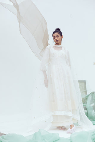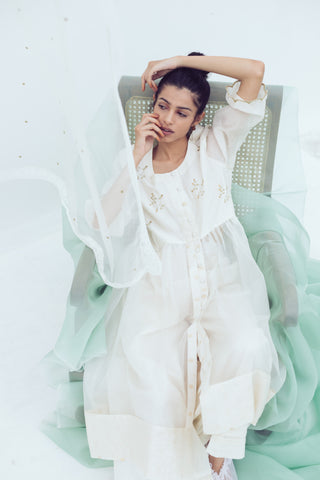 NOTE: The pieces part of this edit are crafted with precision and quality from fabrics diaphanous in nature. These garments involve hand skills which are time and labour intensive. Therefore we won't be able to acknowledge any returns on the same. For customisation request or queries to be answered before making a purchase please reach out to us at studiobykhyati@gmail.com