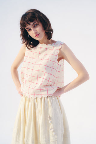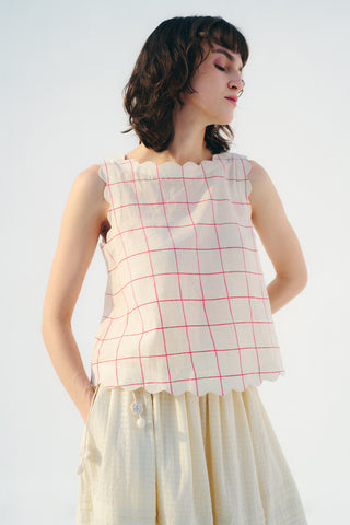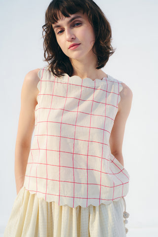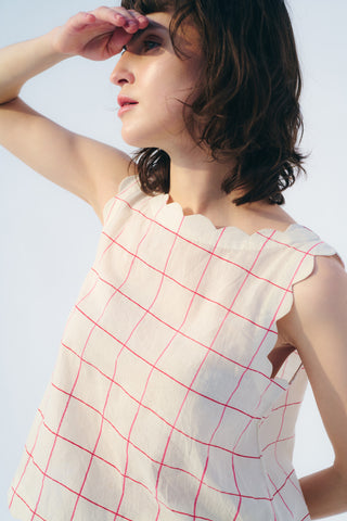 -Boat neck with scallop detail